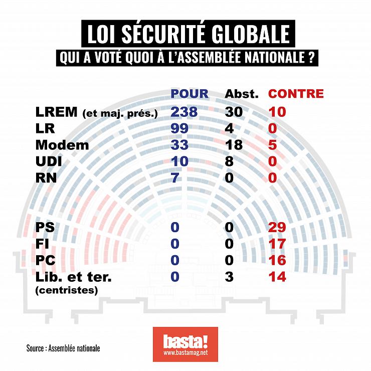 La proposition de loi Sécurité globale a été adoptée à une large majorité à l'Assemblée nationale le 24 novembre, avec le soutien de la droite et de l'extrême droite. Les mesures liberticides qu'elle impose inquiètent jusqu'aux instances de l'Onu et de la Commission européenne. Des mobilisations sont prévues dans toute la France samedi 28 novembre.